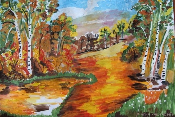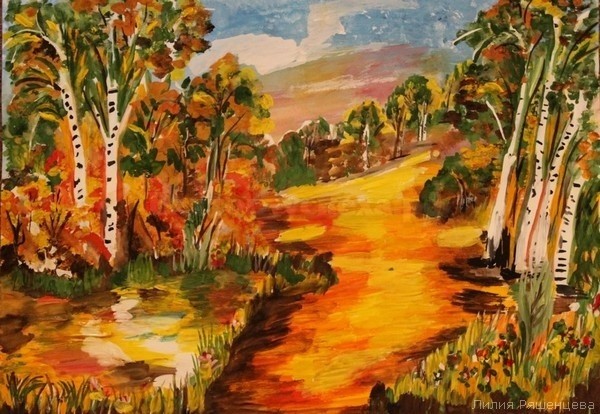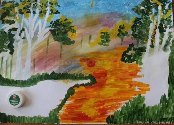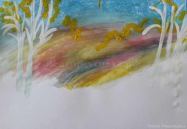 Рисуем гуашью в смешанной технике "Сказки осеннего леса"