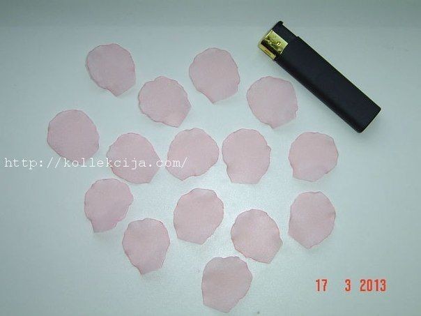 Цветы из органзы или шифона: мастер-классНе забывайте опалять края в пламени свечи, чтобы не осыпались.
