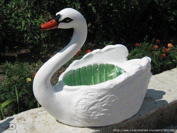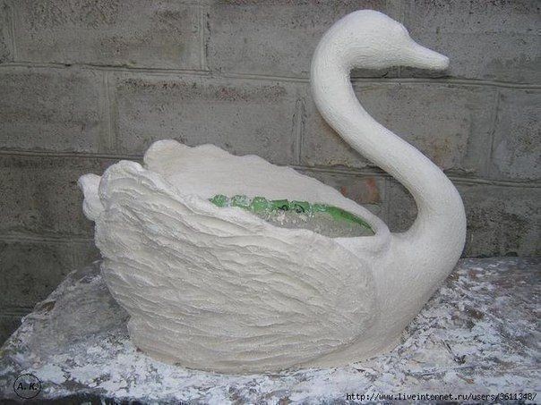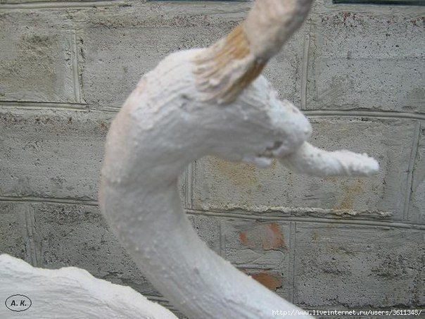 16. Наш лебедь почти готов. Это готовый полуфабрикат… Просмотрите его со всех сторон на этом этапе и скройте шпаклёвкой все изъяны… Через пару часов его можно будет поднять и перенести в другое укромное место от дождя.