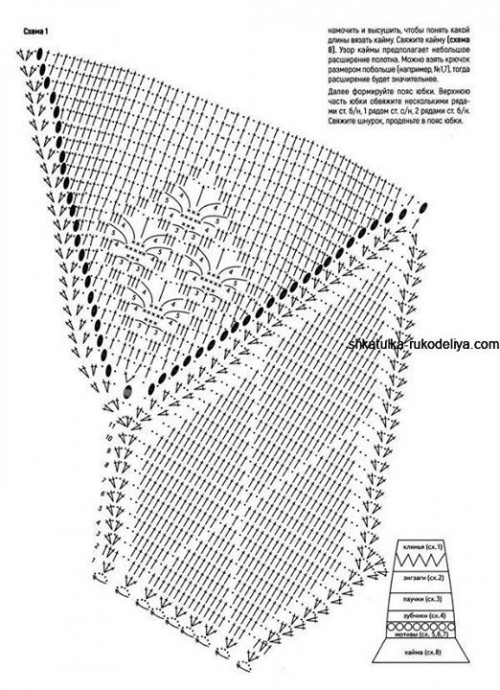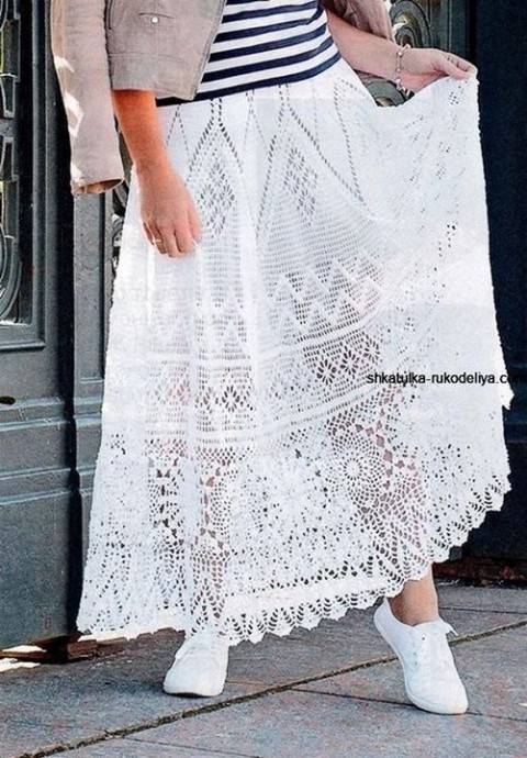 Ажурная юбка невероятной красоты может быть неспешно связана вами к следующему лету или к новогодней поездке к морю.