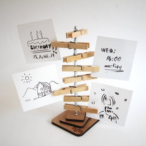 Оригинальные держатели для фотографий, сделанные своими руками, могут быть размещены даже на рабочем столе как напоминание о том, ради чего работаешь.
