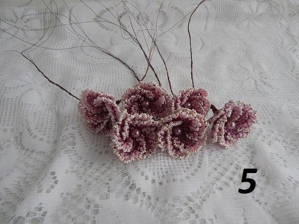 Цветы из бисераЭти цветы создаются на основе колец.Их можно использовать, например, как кулоны.