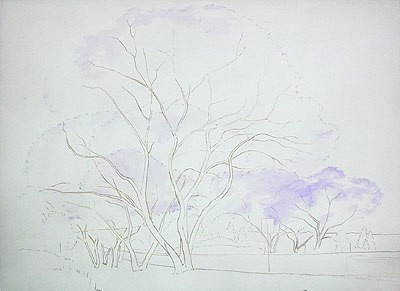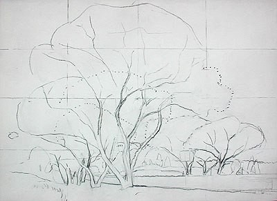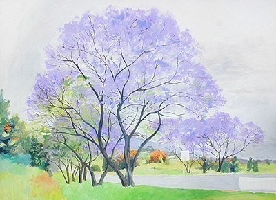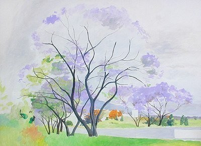 Очень красивый пейзаж нарисован в жизнерадостных тонах.
