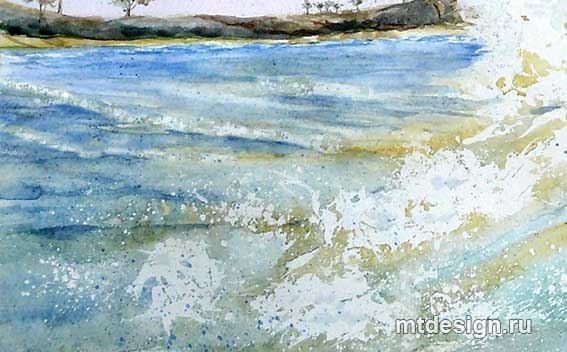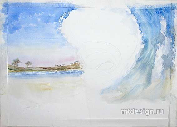 Рисуем красивый морской пейзаж с волной и наслаждаемся фейерверком смешения красок в едином прекрасном рисунке.