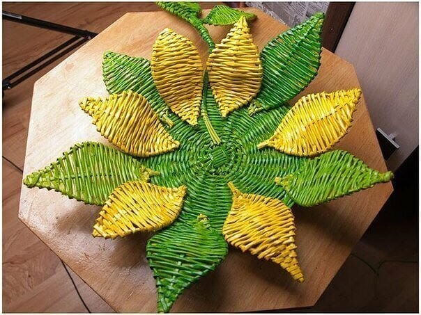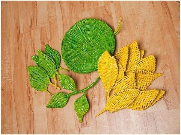 Ароматный подсолнушек в виде декоративной вазы из газетных трубочек