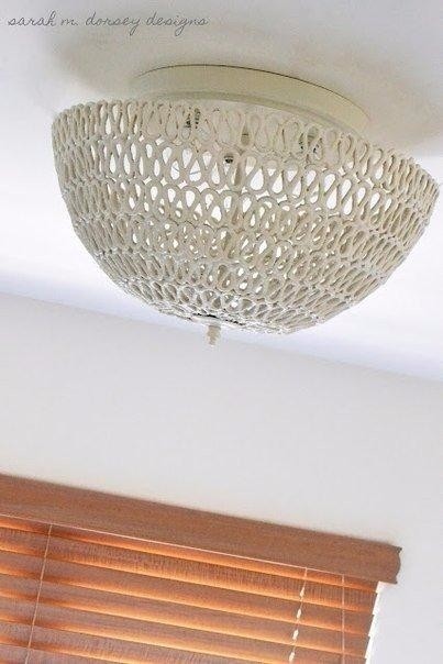 Необычный плафон из веревки будет отлично смотреться не только на даче, но и в спальне или на кухне.