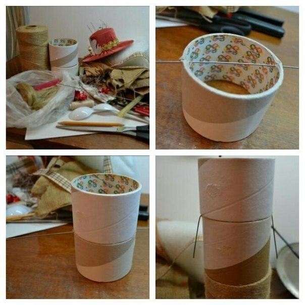 26. Такую заготовочку приклеиваем ко дну и декорируем косичкой из шпагата.