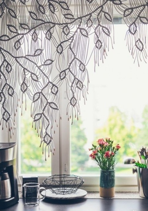 Занавески в виде листиков а технике макраме