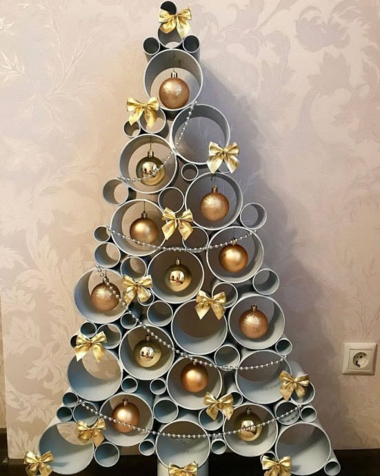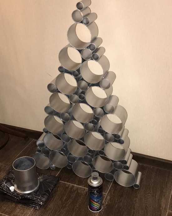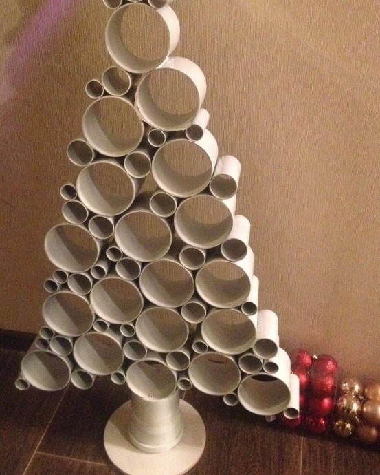Елочка из остатков труб разного диаметра склеивается легко и быстро.