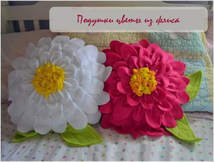 Подушки-цветочки не только красивы, но и удобны благодаря мягкому флису.