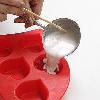 3. Положите нарубленные кусочки мыла в форму. Мы использовали силиконовую форму для выпекания кексов в виде сердца