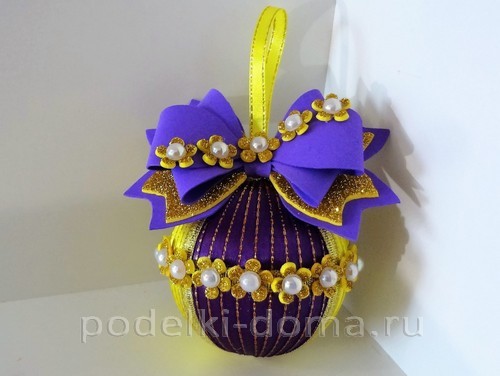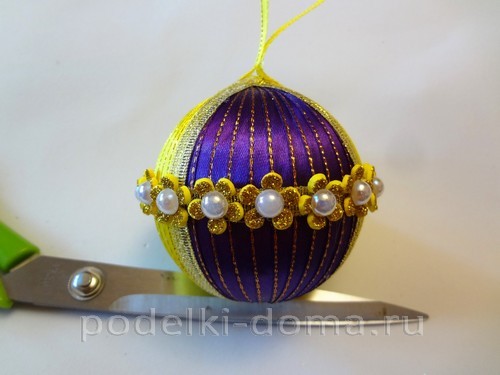 Красивый шар из лент заменит традиционные ёлочные игрушки, придав ёлке особый шарм.