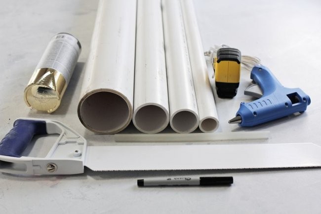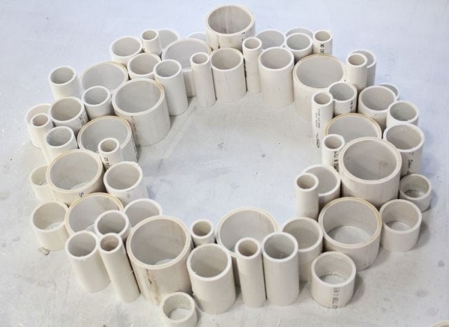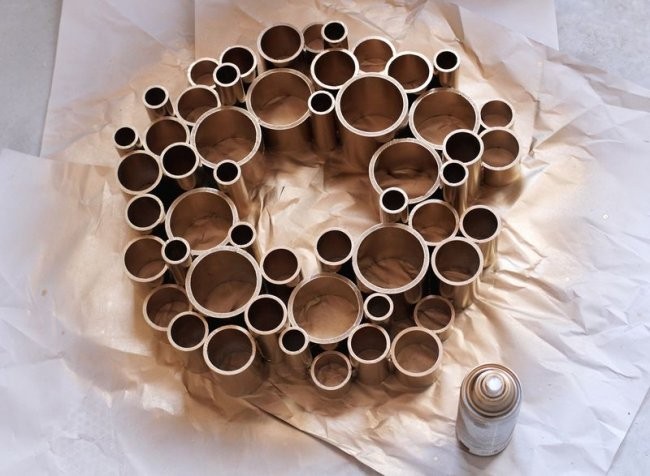 По аналогии можно сделать необычную полку. Для этих целей лучше брать трубы большего диаметра.