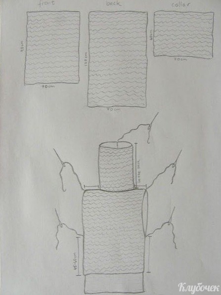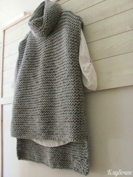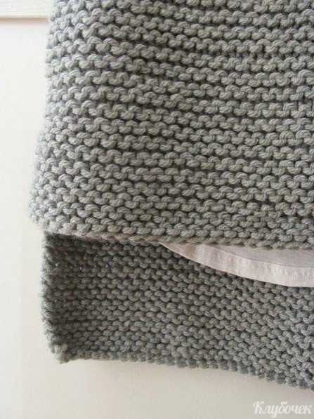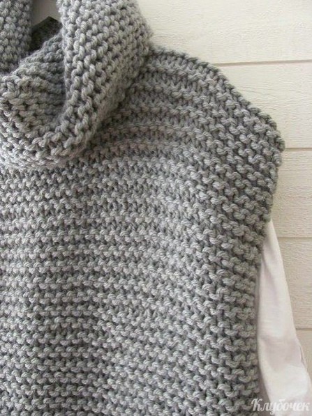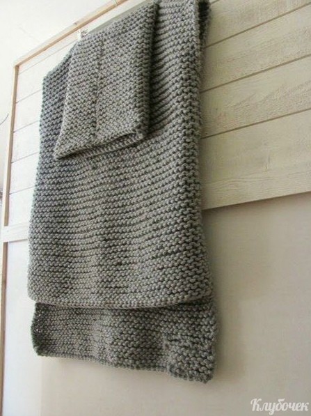 Это гениальное творение женского разума вяжется платочной вязкой из ровных прямоугольников.