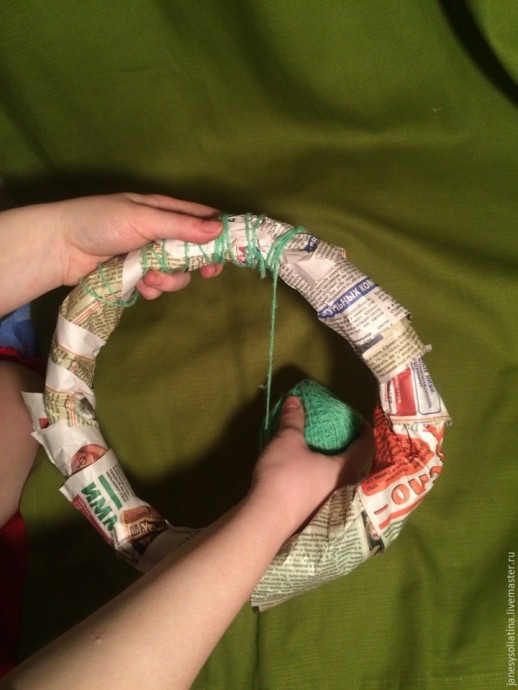Пушистый Рождественский венок приобретает объем благодаря бумаге внутри.