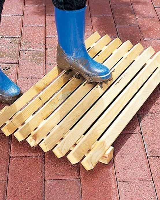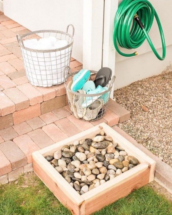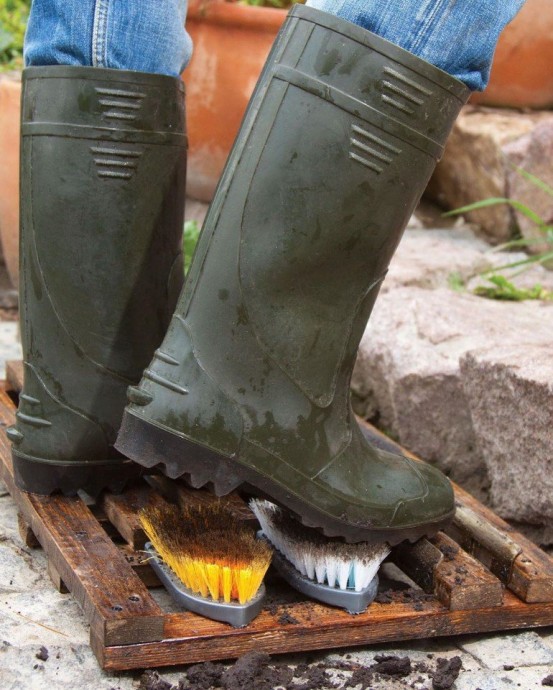 Чтобы сделать зону для чистки обуви от грязи, в ход пойдет все от камней до щеток.