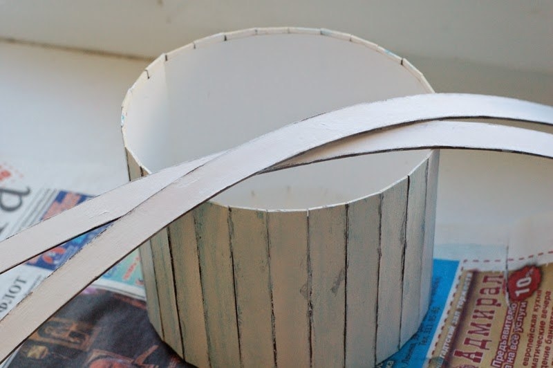 Плетем из газетных трубочек бочонок для конфет.