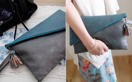 Оригинальная сумка-клатчВырезаем по шаблону.Сгибаем и вшиваем молнию.Всё. Сумка-клатч готова.