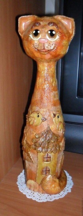 Создать интерьерного кота помогут бутылка и фольга, на основе которых он и создается.