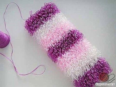 Вязать мочалку просто: 1 ряд столбики без накида, 1 ряд вытянутые петли.
