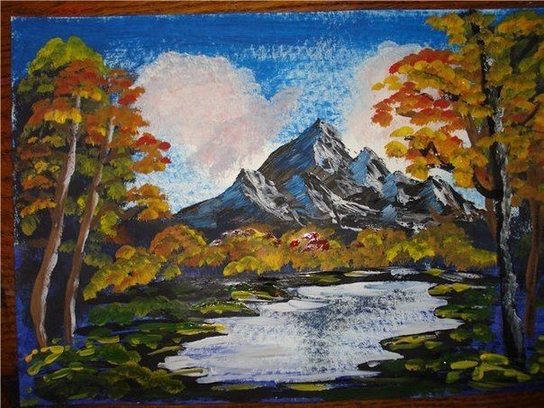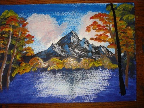 Учимся рисовать горный пейзаж гуашью, чтобы потом по фэн-шуй разместить его у себя за плечами.
