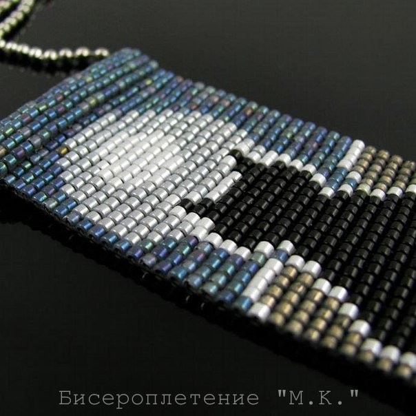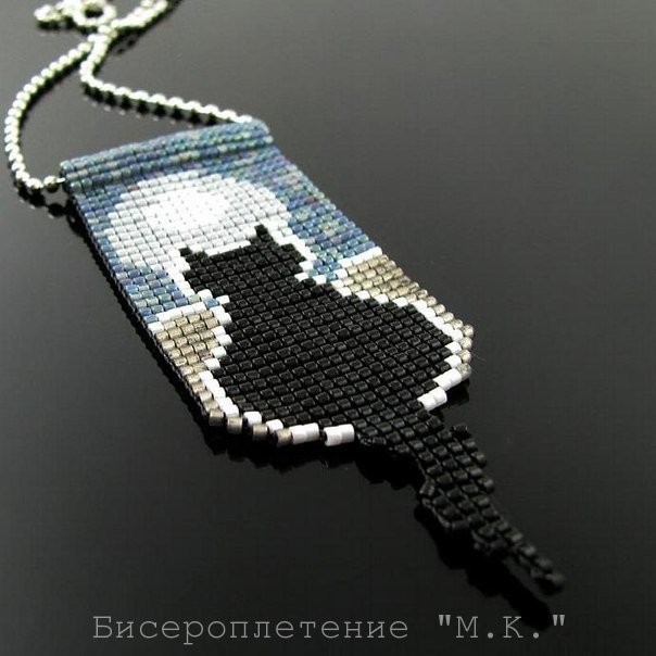Кулон из бисера "Силуэт кошки на фоне луны"