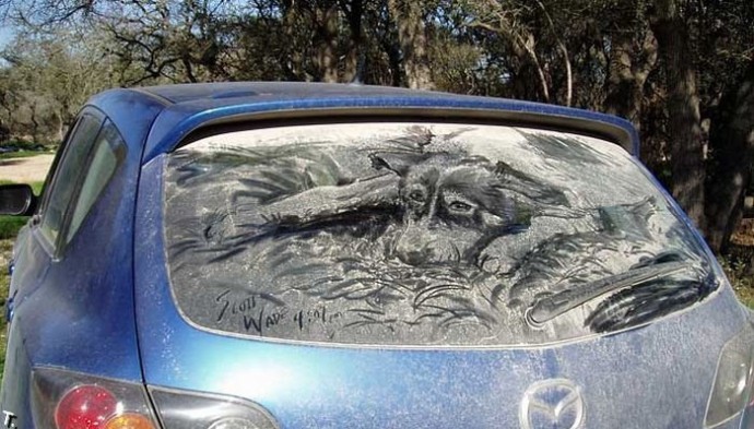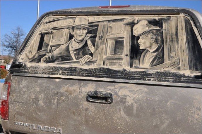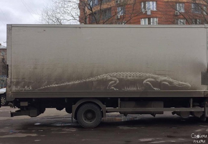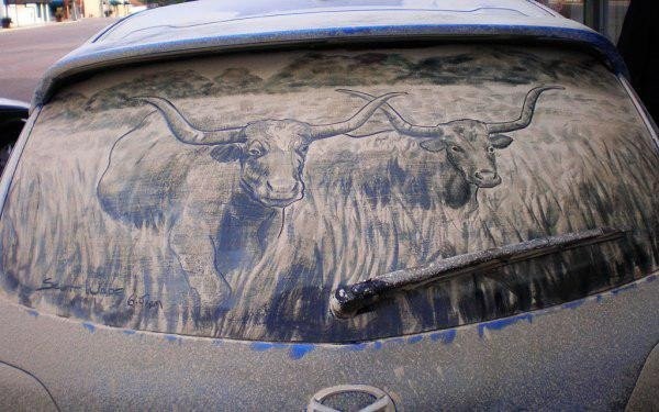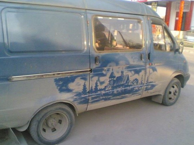 Новый вид творчества - картины на грязных машинах - кому-то покажется бесполезным.