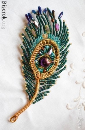 Перо павлина из бисера будет приносить удачу даже больше обычного павлиньего пера,