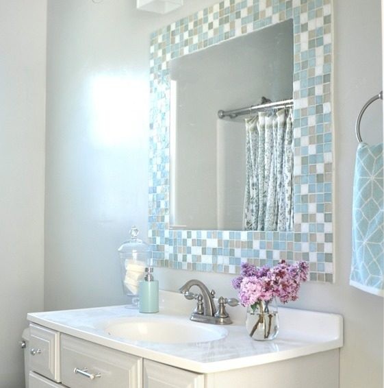 Зеркало с мозаикой для ванной можно не покупать готовое, а сделать своими руками, подобрав мозаику нужной формы и желаемых оттенков.