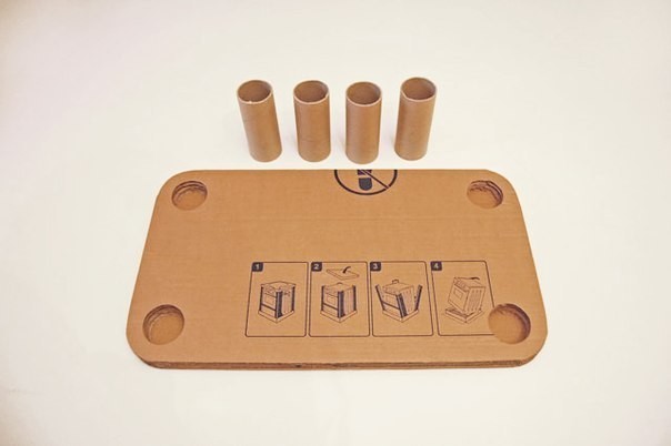 Столик из картонной коробки и втулок от бумажных полотенец намного легче деревянного и стоит гораздо дешевле.