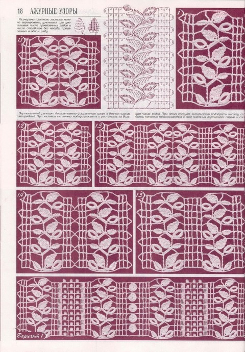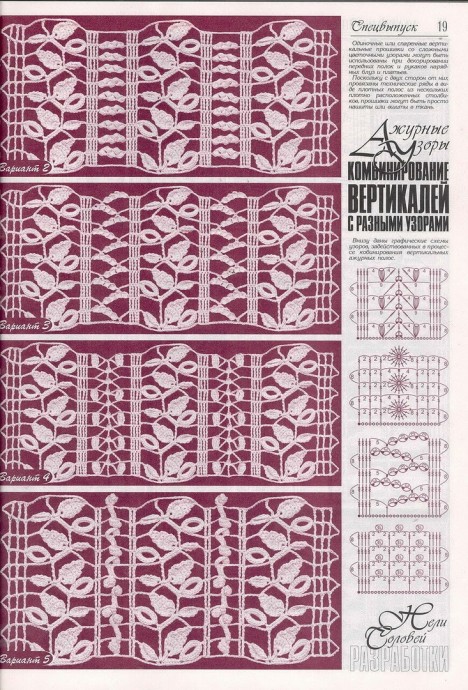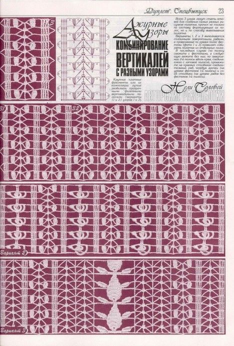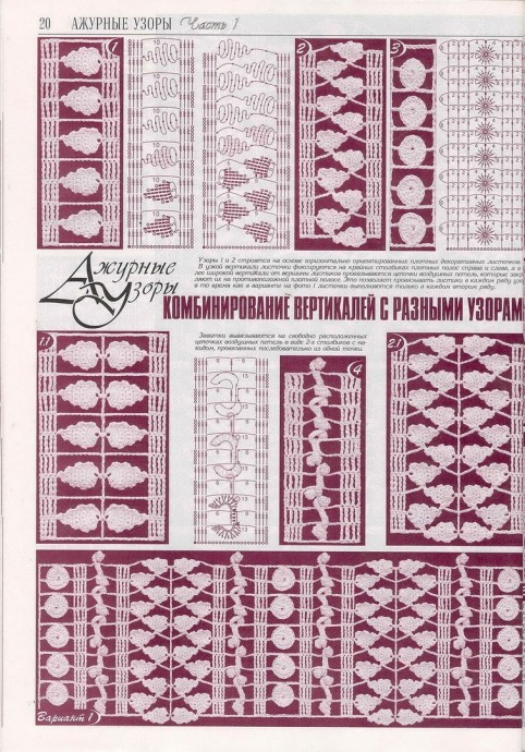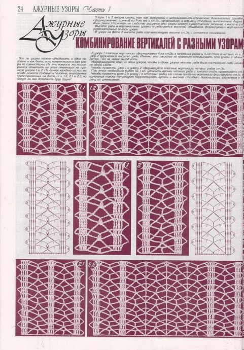 Ажурные узоры крючком: комбинирование вертикалей с разными узорами