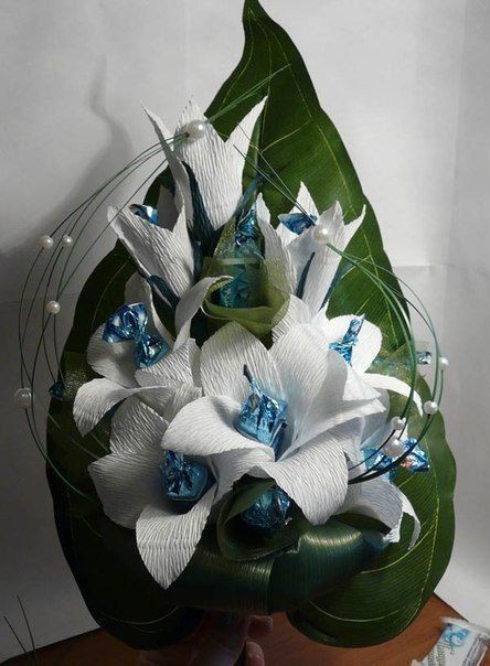 Отличная экономия на дорогих конфетах, просто завернуть каждую конфету в бутоны бумажных цветов…… Если этот декор для детей — я им не завидую… ..
