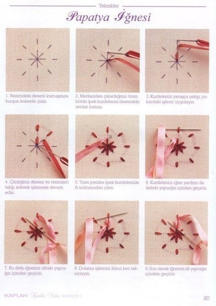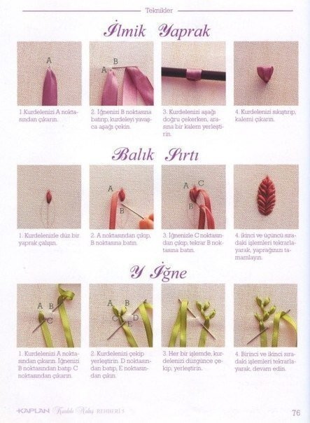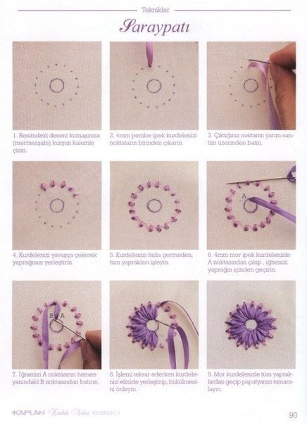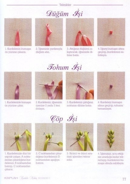 Вышивка лентами: стежки