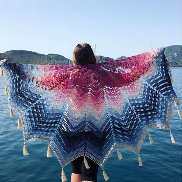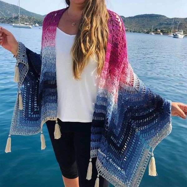 Градиентная красочная шаль крючком станет украшением вашего гардероба и дополнит многие образы.
