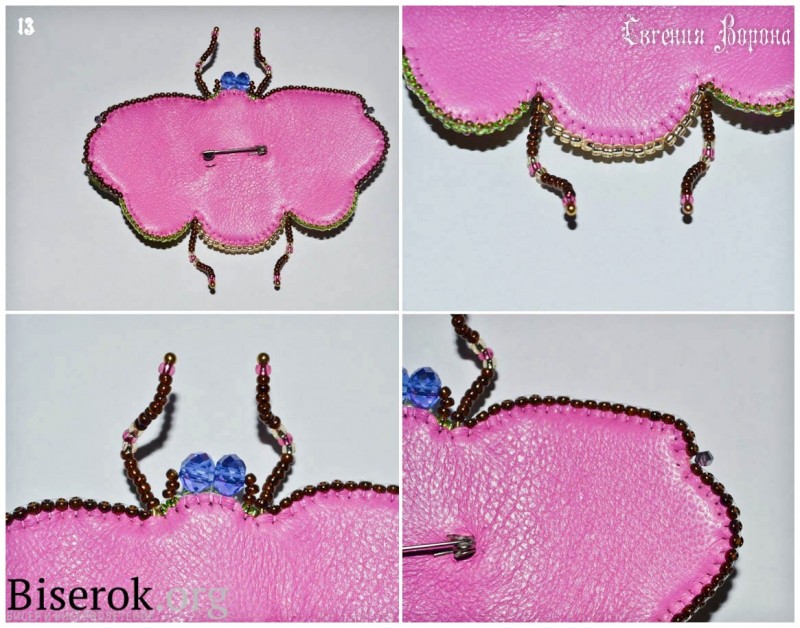 Размер брошки можно менять, подбирая бисер или бусины другого размера.