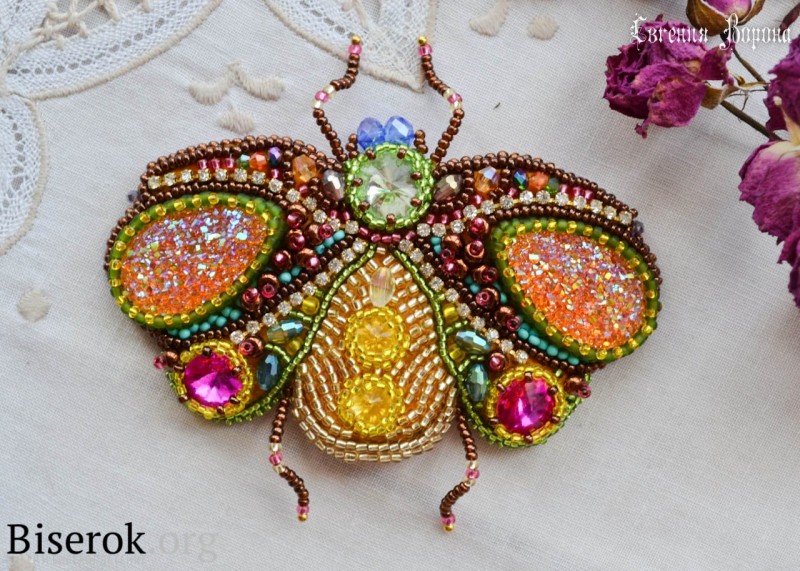 Брошка в виде жука из бисера, кажется, оживет прямо на глазах.