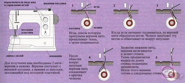 Обязательно проверить натяжение и равномерность подачи нижней нитки со шпули, потянув за нижнюю нитку, когда машина заправленна нитками. Если нижняя нить идет с небольшим натяжением, но свободно и без рывков и заеданий, значи все нормально. Если слишком легко - будут петли и путаться нитка в шпуле. Если есть рывки то виновата неподходящая или поцарапанная иглой шпулька. Так же из-за шпульки бывает что нижняя нитка идет очень тяжело.