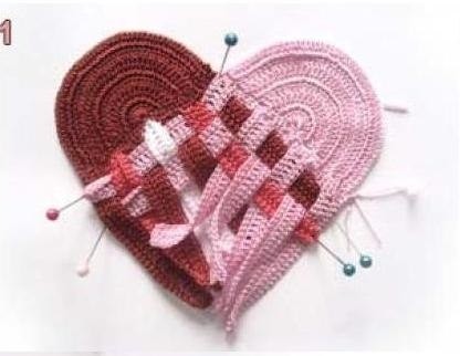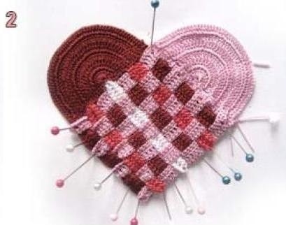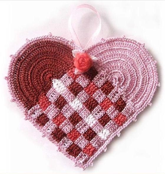Валентинка в виде вязаного сердечка станет хорошим подарком на 14 февраля.