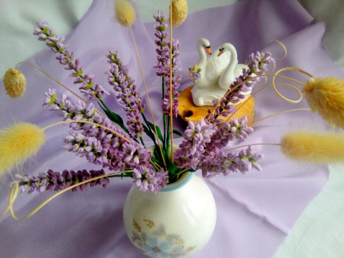 Лаванда из фоамирана выглядит очень похожей на настоящую.