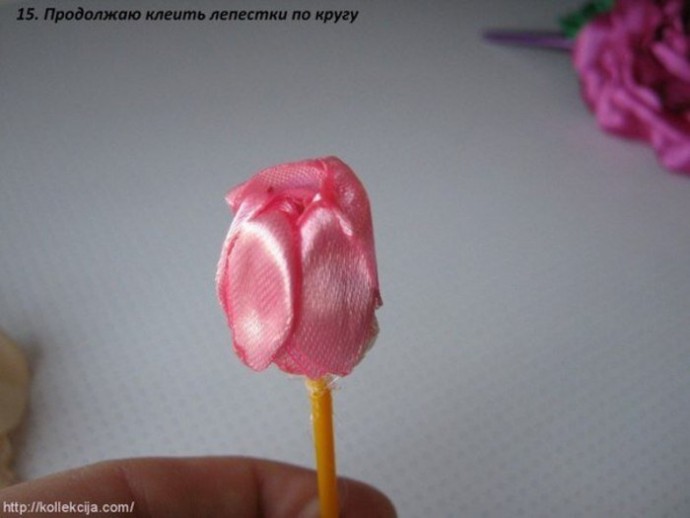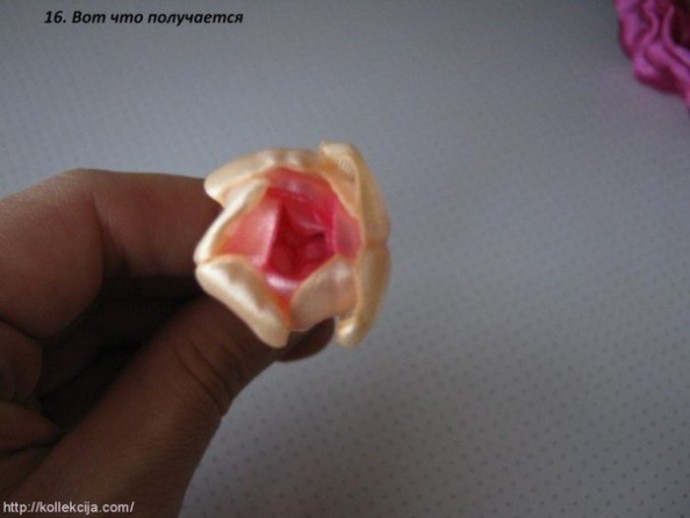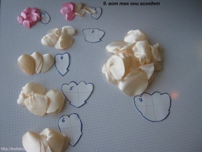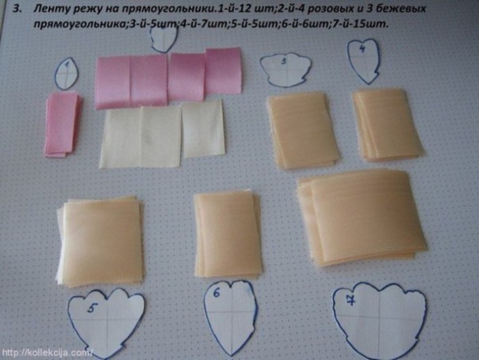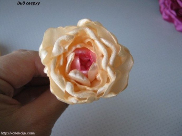 Розочки из атласных лент: мастер-классЕще более нежно они будут смотреться из полупрозрачной органзы.