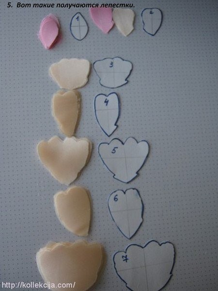 Цветок из атласных лент: мастер-класс, часть 2Авторы: Лбова Анастасия, Тюкова Екатерина Александровна.8. У нас получилось 6 лепестков.9. Вырезаем из белого картона круг для основан...