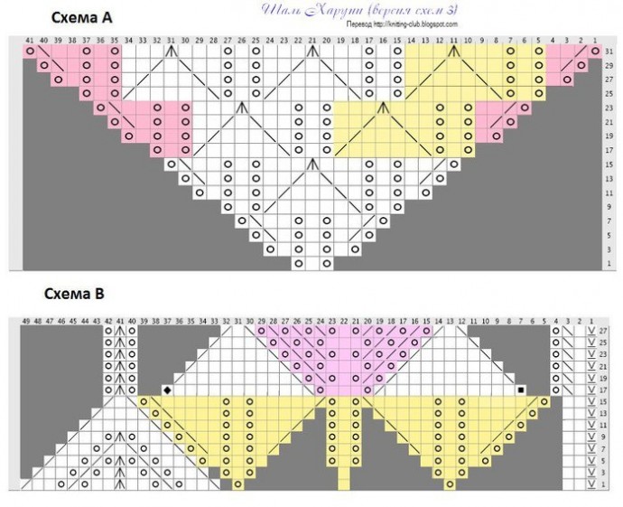начинай вязать по схеме В, меня там пугали серые квадратики, но потом до меня дошло, что на них смотреть вообще не надо.