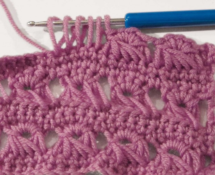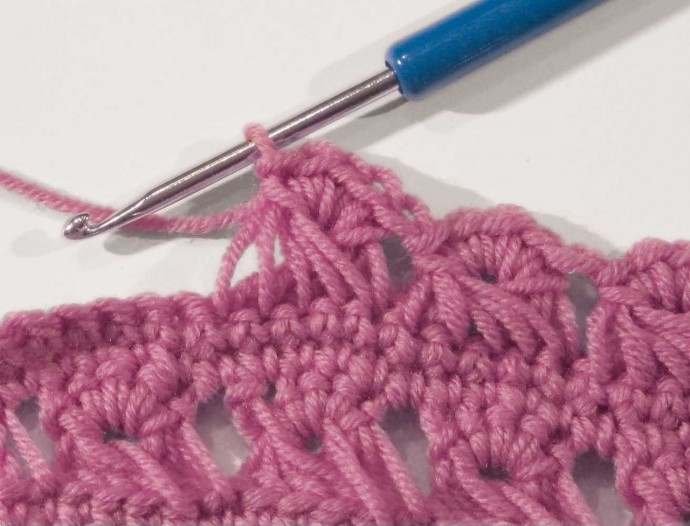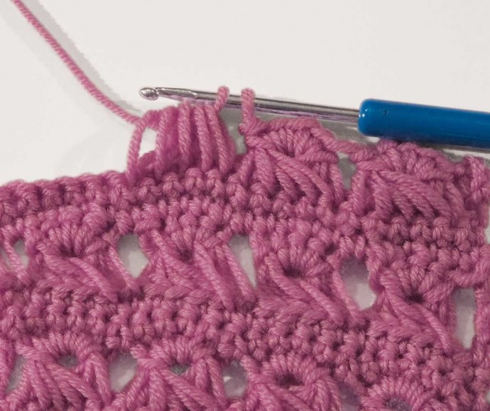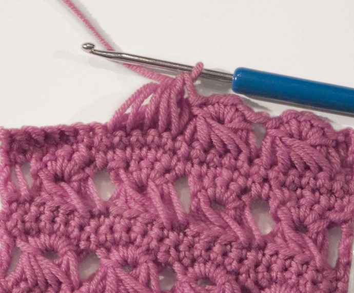 Захватить нить и протянуть ее через 2 оставшиеся на крючке петли. Снова ввести крючок в эту группу петель и выполнить 1 ст. б/н.