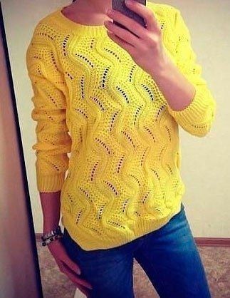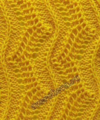 Выполнена спицами узором вертикальная волна, которая дополнена патентным узором.