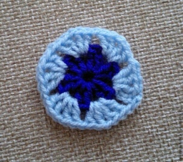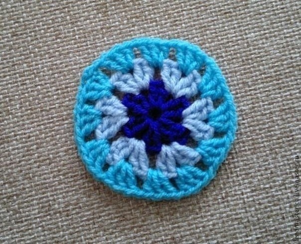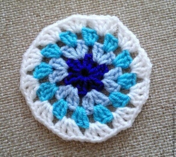 Мотив превращается в квадрат из круга только на самом последнем этапе вязания.