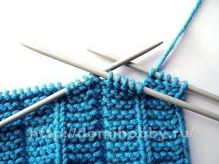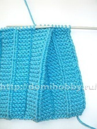 Начало вязания с самых маленьких граней из одной петли. Наберите число петель кратное 4-м, + 3 дополнительных, + 2 кромочных. 1-й ряд (лиц.): кром., *3 лиц., 1 п. снять – нить перед работой, повторять от* до конца ряда, кром. 2-й ряд (изн.): кром., 1 лиц., *1 п. снять – нить перед работой, 3 лиц., повторять от*, закончить 1 п. снять – нить перед работой, 3 лиц., кром. Повторять 1-й и 2-й ряд до необходимой высоты полотна, затем прибавить в каждой грани по 1-ой петле. Прибавления следует делать на равных расстояниях в высоту для равномерного расширения полотна до желаемой ширины. Складки хорошо смотрятся на лицевой глади, для формирования внешних и внутренних углов складок используют снятые петли.