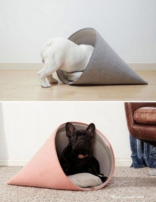 Оригинальная лежанка для маленькой собачки или кошечки пародирует нору - и от этого становится еще уютнее и любимее.