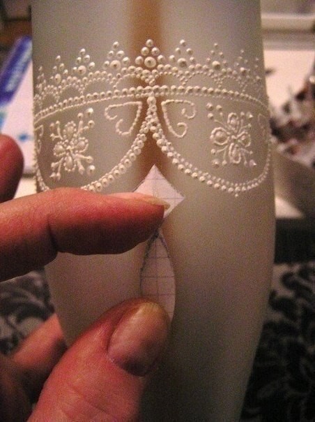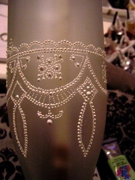 Точечная роспись бутылок по трафаретам позволяет создавать идеально пропорциональные и одинаковые рисунки.