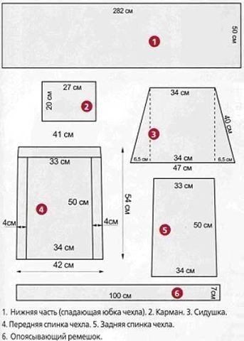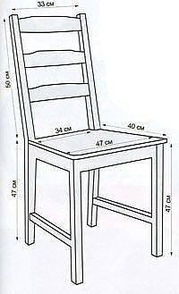 Чехол предложенного нами покроя подходит только для стульев с прямыми спинками, верхний край которых не шире нижнего. Снимите мерки со стула. По ним сделайте лекала для каждой детали отдельно. Затем прикрепите лекала к ткани и обведите мелом. Не забудьте оставить припуски на швы (около 1.5 см). При изготовлении лекала передней спинки стула, учитывайте ее ширину (в нашем случае 4 см).