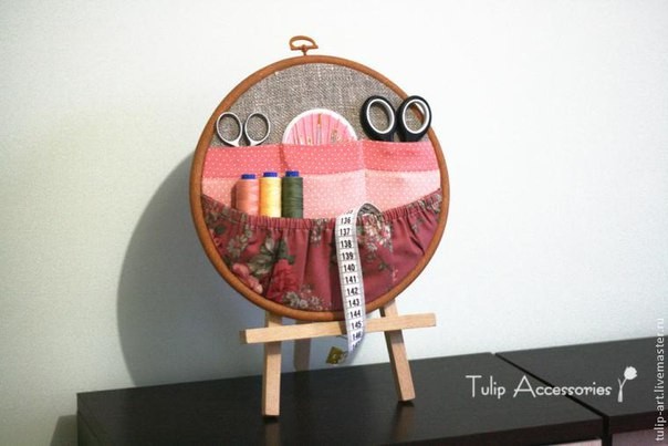 Органайзер для рукоделия в пяльцах это необычное и красивое решение, которое способно украсить рабочий стол.